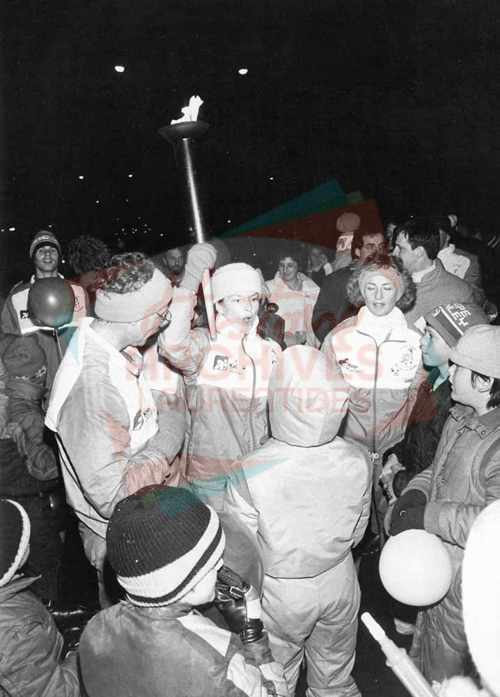 Arrivée de la flamme des Jeux d’hiver du Québec, s’étant tenus à Saint-Jérôme en mars 1987.