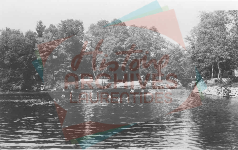 Étudiants du Collège commercial de Saint-Jérôme se baignant dans la rivière du Nord, lors d’une sortie à l’île des Frères des Écoles chrétiennes.