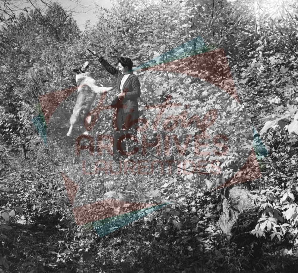 Femme jouant avec le chien de la famille Clouthier.