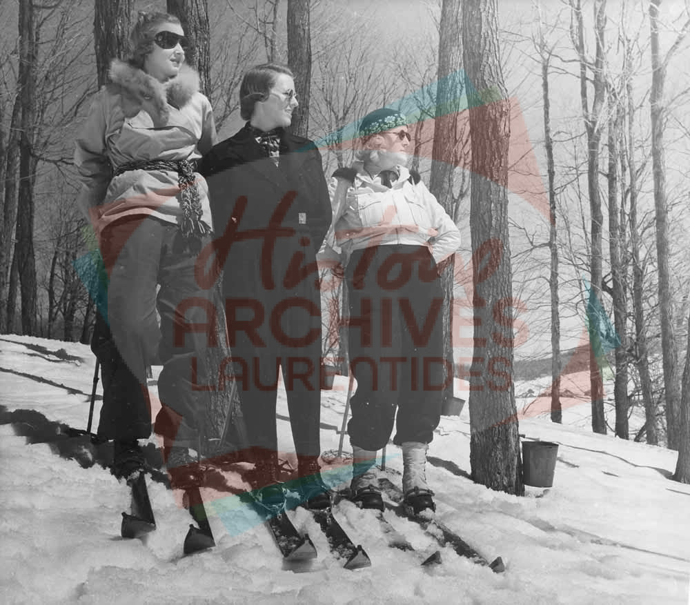 Skieuses, dont Jeanne Clouthier à droite, à l’érablière Larose à Val-Morin.