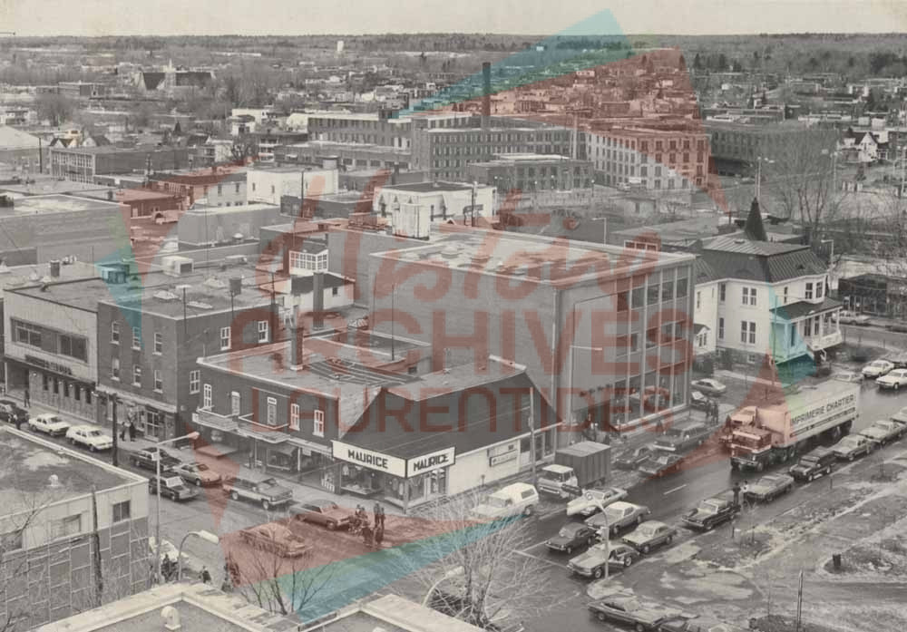 Commerces des rues Saint-Georges, Parent et Labelle, à partir du toit de la cathédrale de Saint-Jérôme.