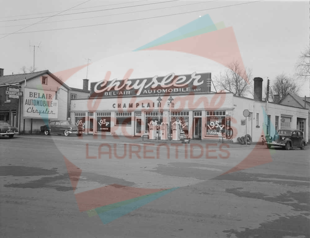 Concessionnaire Belair automobile (Chrysler), situé au 201 rue Saint-Georges au coin de la rue Latour. On y vendait également de l’essence.