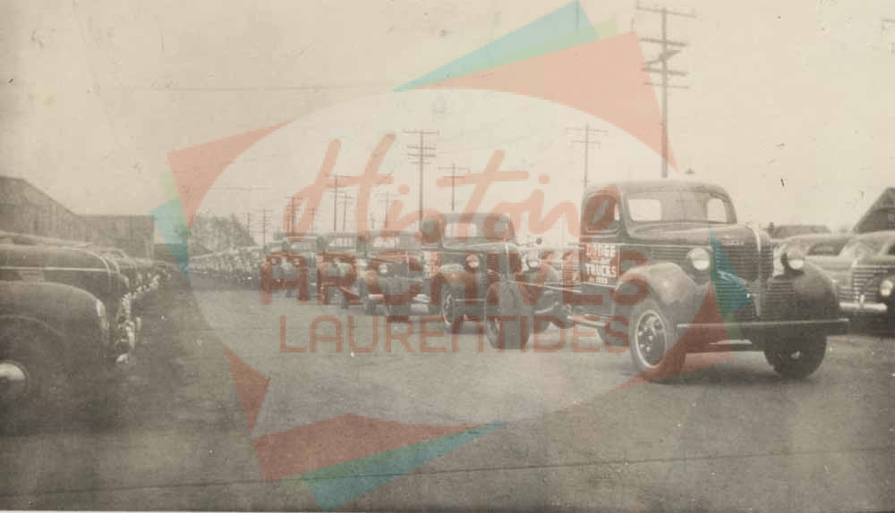 Garage Émile Lauzon lors de la corvée de transport de camions Dodge de Toronto à Saint-Jérôme.