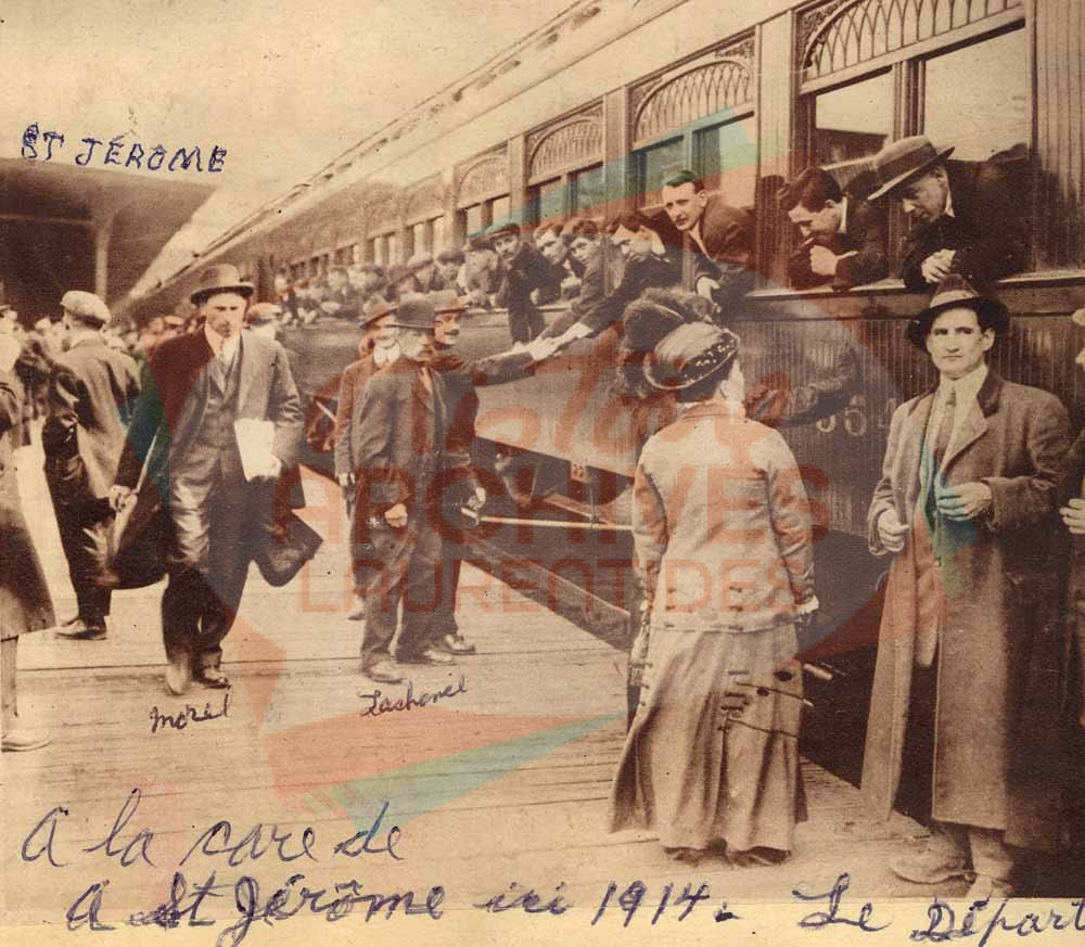 Train du Canadien Pacifique lors du départ des soldats pour la Première Guerre mondiale à la gare de Saint-Jérôme.