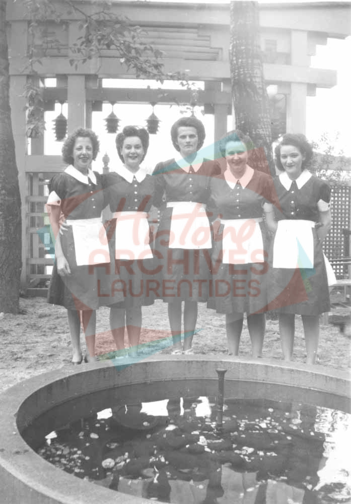 Marie-Paule Lavigueur et ses collègues travaillant à l’hôtel Lapointe. Elles portent leur uniforme de femme de ménage.