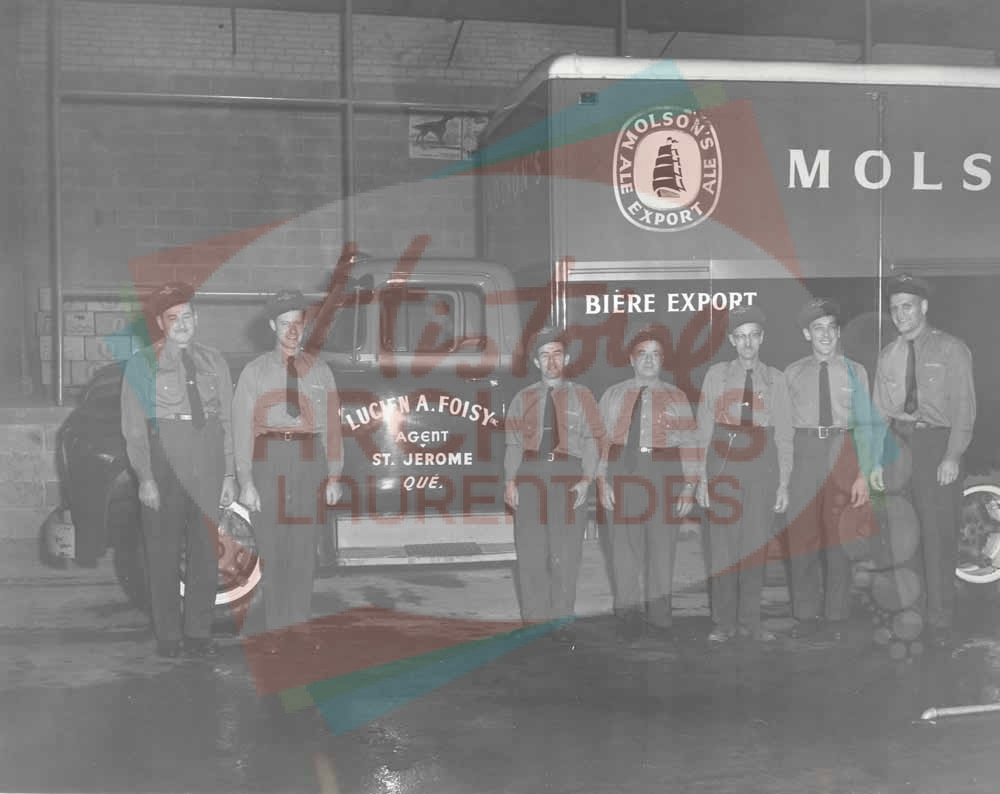 Employés de la Molson de Saint-Jérôme devant le camion de bière.