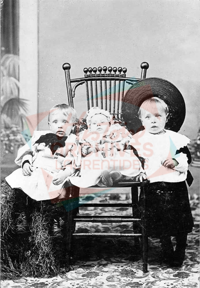 Trois enfants Léveillé, Louis-Philippe, Paul-Émile et Reine-Aimée (bébé).