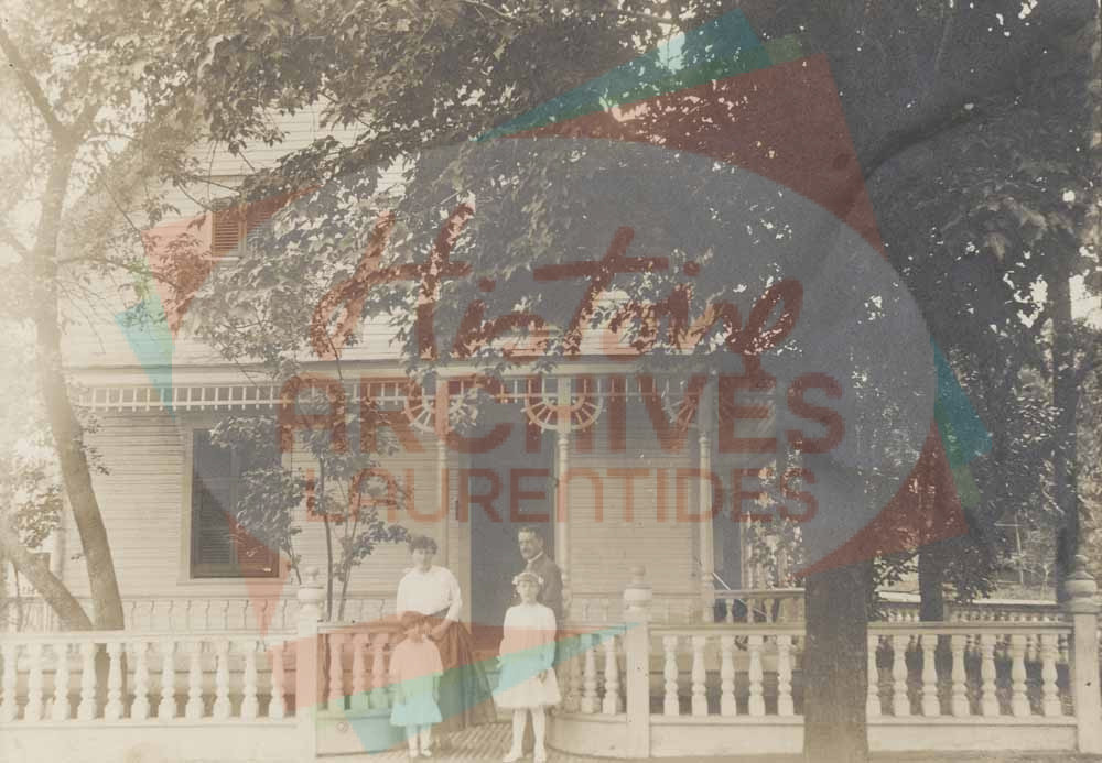 Charles-Édouard Marchand et Alice Rolland, son épouse, ainsi que leurs deux filles, Rollande et Louise, devant la résidence familiale, située au 255 rue Saint-Georges à Saint-Jérôme.