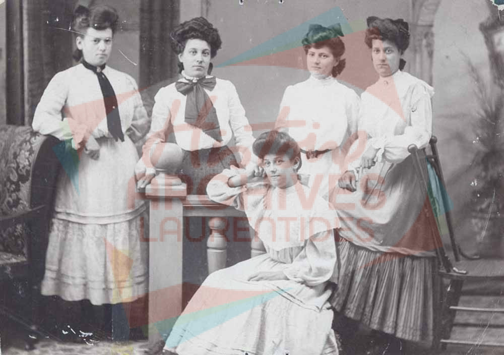 Groupe de femmes composé de Émilia Matte, Parmélia Grignon, Marie-Louise Trhan, Léocardie et Léonide Grignon.
