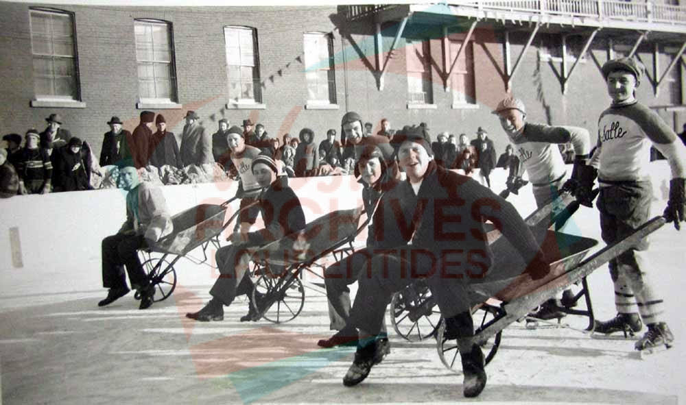 Course de brouettes des étudiants du Collège commercial de Saint-Jérôme, lors de la fête sportive d’hiver.