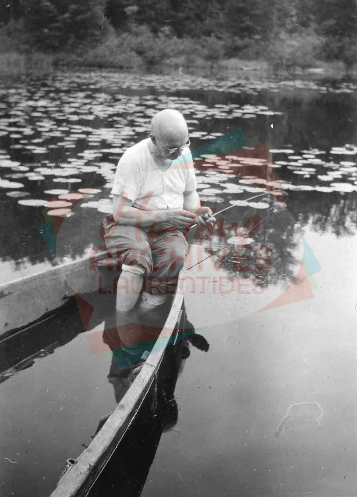 Georges Allaire, photographe de Saint-Jérôme, dans sa chaloupe en train de pêcher la truite au Lac Charley.