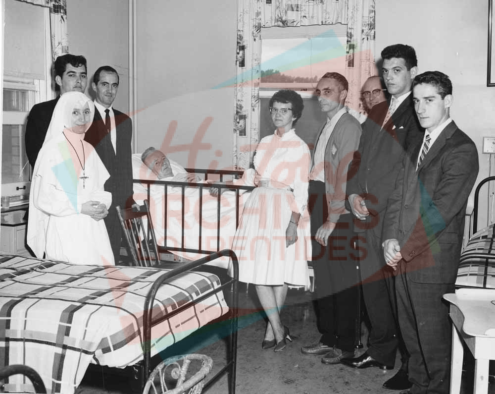 Groupe au chevet d’un malade à l’hospice Youville de Saint-Jérôme.