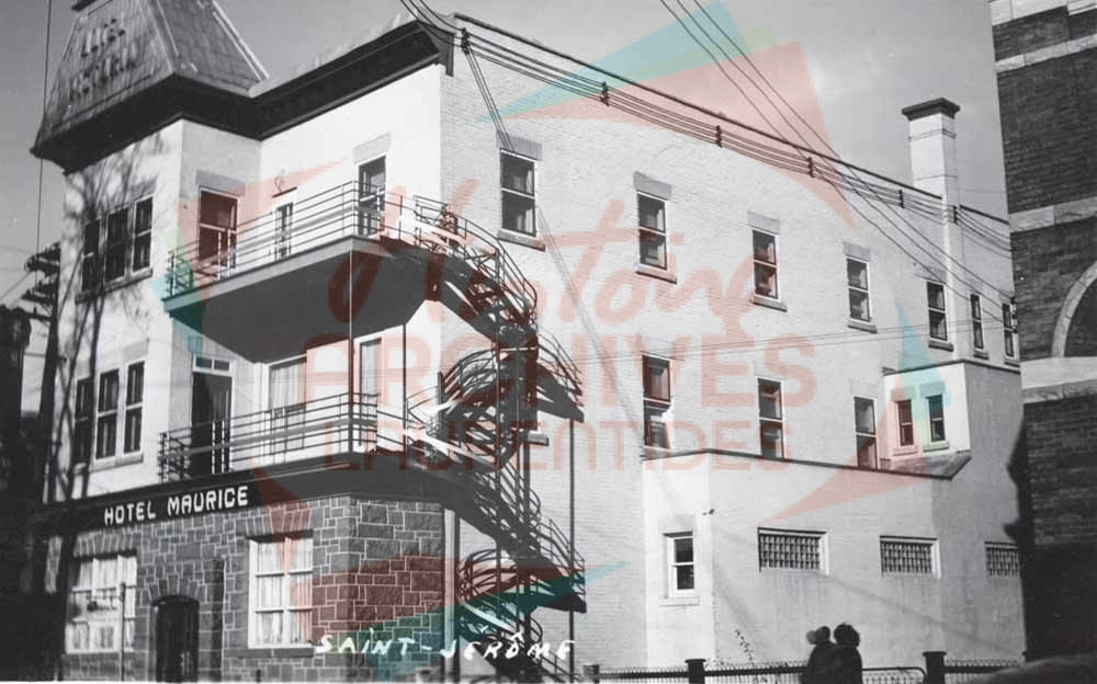 Hôtel Maurice, situé sur la rue Labelle au coin de la rue de la Gare. Construite en 1878, la bâtisse s’est modernisée au fil du temps. On y trouvait un bar et une grande salle à manger, en plus des chambres. Pendant plus de 40 ans, Aurèle Maurice a dirigé l’établissement qu’il a vendu en 1966. Plusieurs propriétaires se succèdent jusqu’à l’incendie du commerce en 1984. Aujourd’hui, c’est un stationnement qui se trouve à son emplacement.
