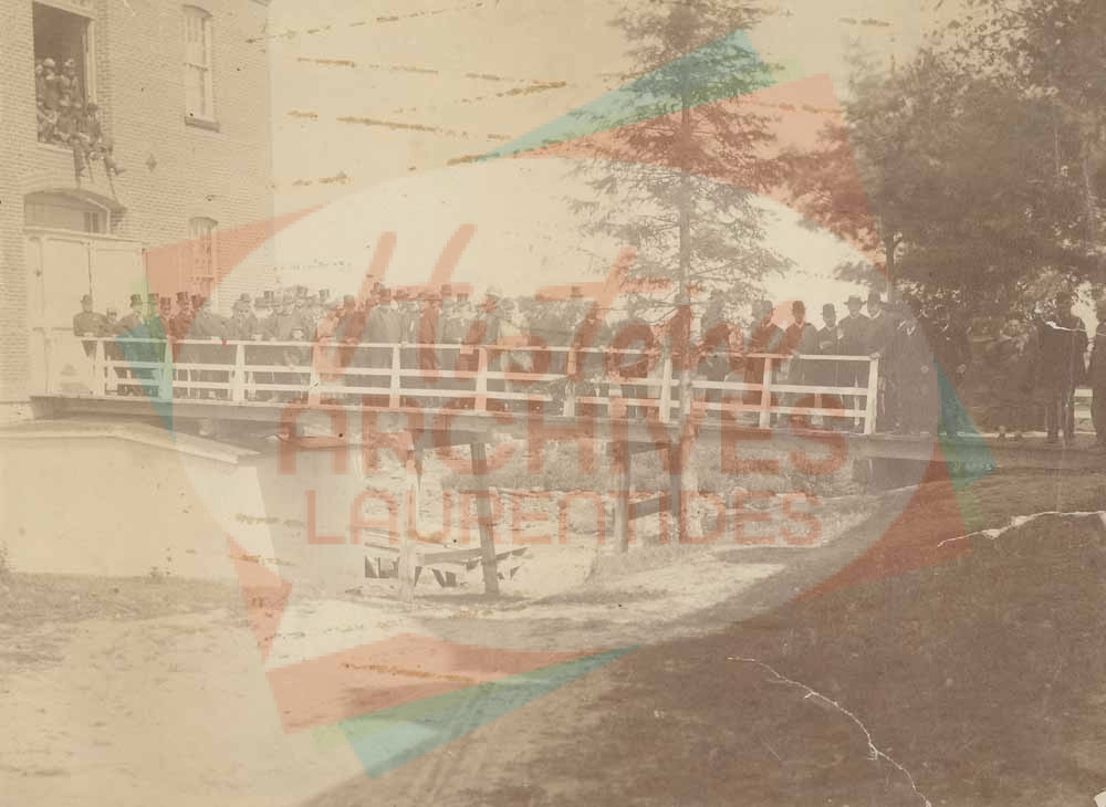 On reconnaît entre autres le curé Antoine Labelle avec son chapeau haut-de-forme.