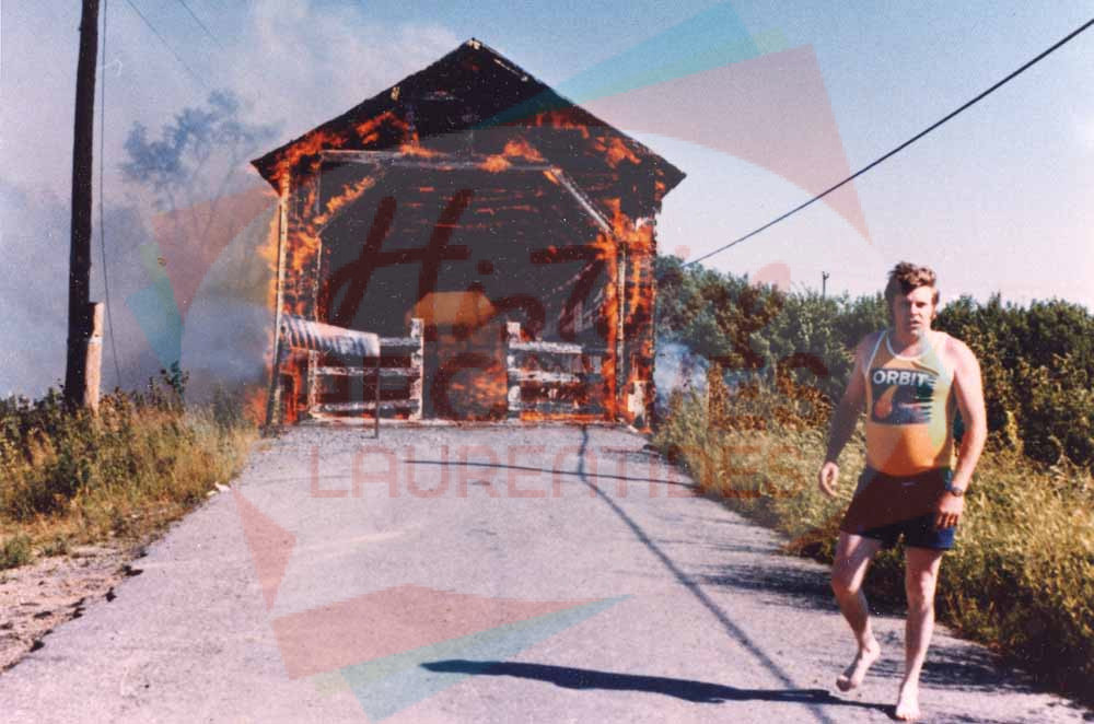 Incendie du pont couvert de Saint-Colomban, construit en 1937.