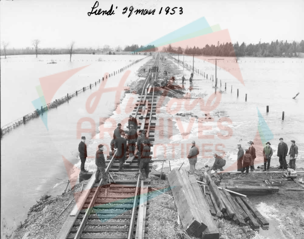 Inondation de la voie ferrée du Canadien Pacifique entre Saint-Jérôme et Saint-Janvier.