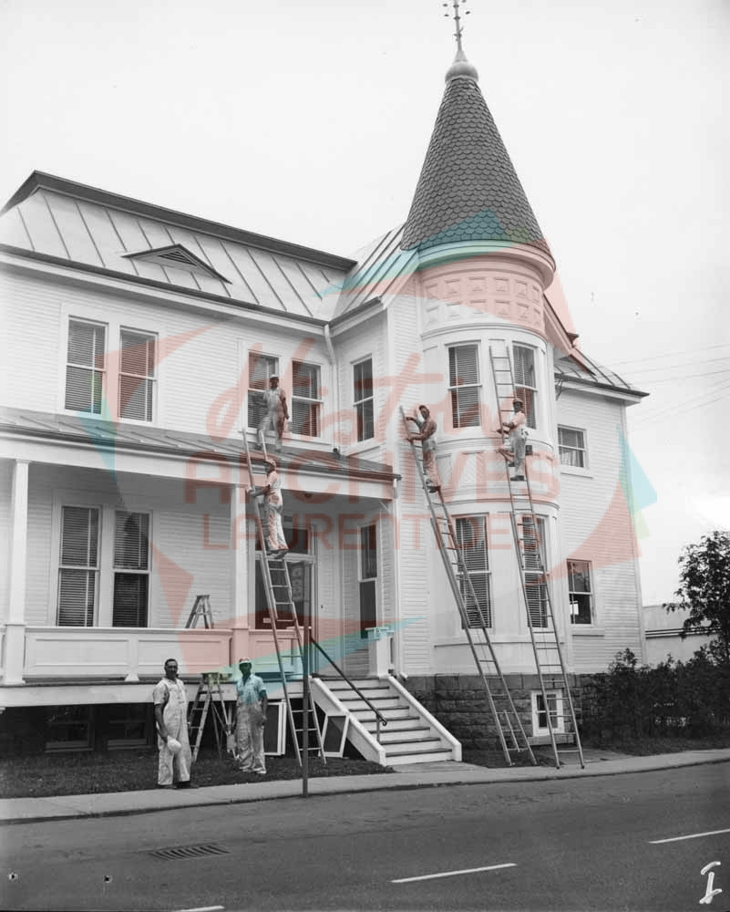 Maison Prévost de Saint-Jérôme, surnommée aussi maison blanche, lors de travaux de peinture.
