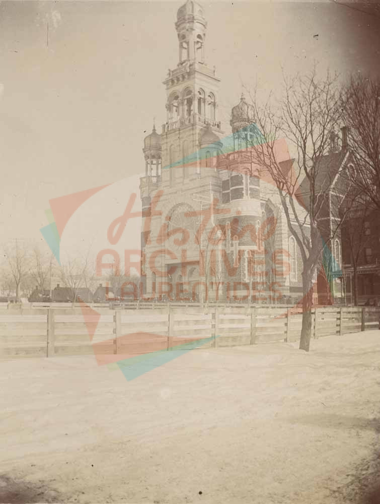 Nouvelle église de Saint-Jérôme, avec ses clochers de style byzantin, à la sortie de la première grande messe.