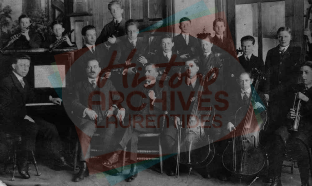 On peut voir messieurs Martial et Dufresne, F. Deschambault, G. Labelle, H. Brosseau, Georges Cameron, Guillaume Cadieux (violon), Georges Dunnigan (violon), Josaphat Gagné (piano), René Gagné (premier violon) et J.J. Gagné (directeur).