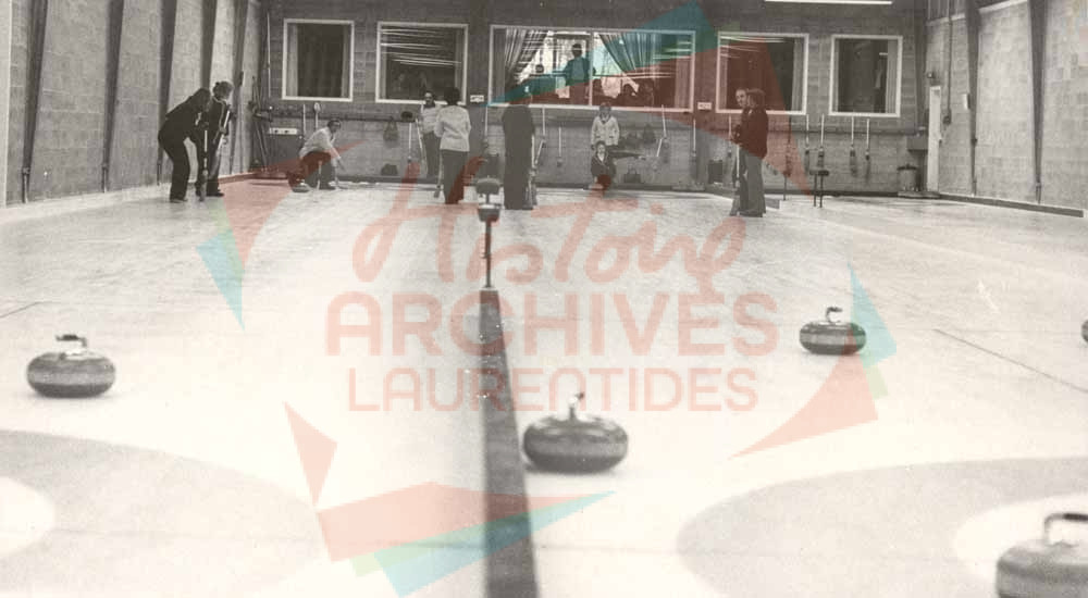Patinoire du Club de curling de Saint-Jérôme. En arrière-plan, on peut voir les grandes fenêtres donnant sur le lobby du club.
