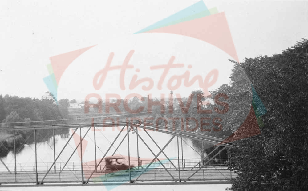 Voiture circulant sur le pont de fer de la rue Castonguay à Saint-Jérôme.