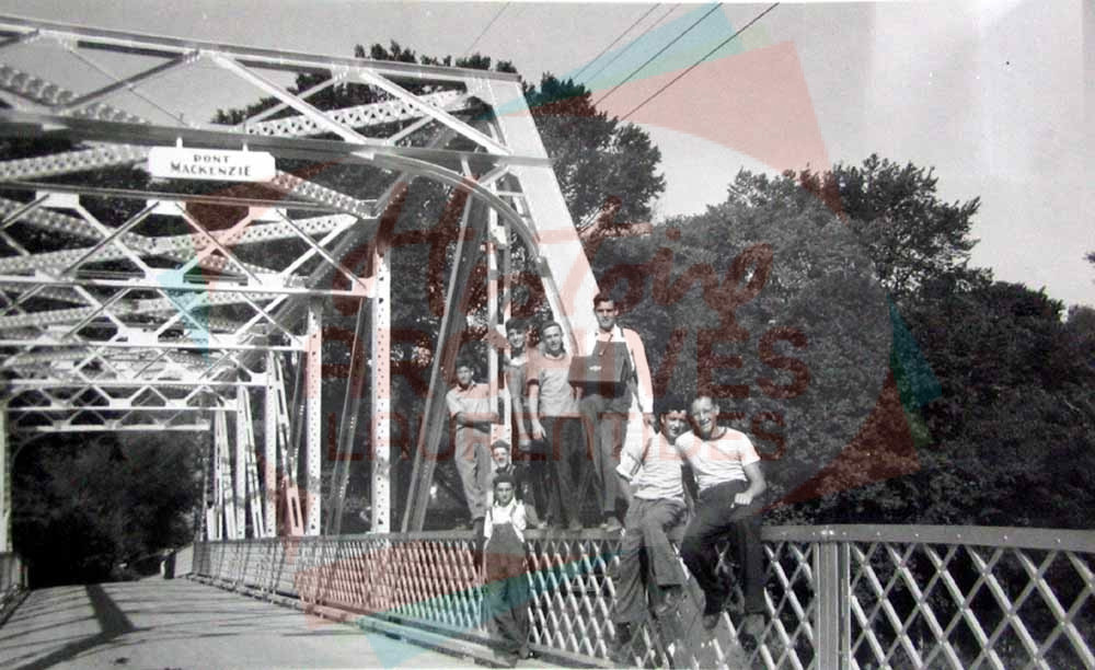 Groupe de jeunes étudiants du Collège commercial de Saint-Jérôme au pont Mackenzie de Saint-Canut, lors d’une excursion vers Sainte-Scholastique.