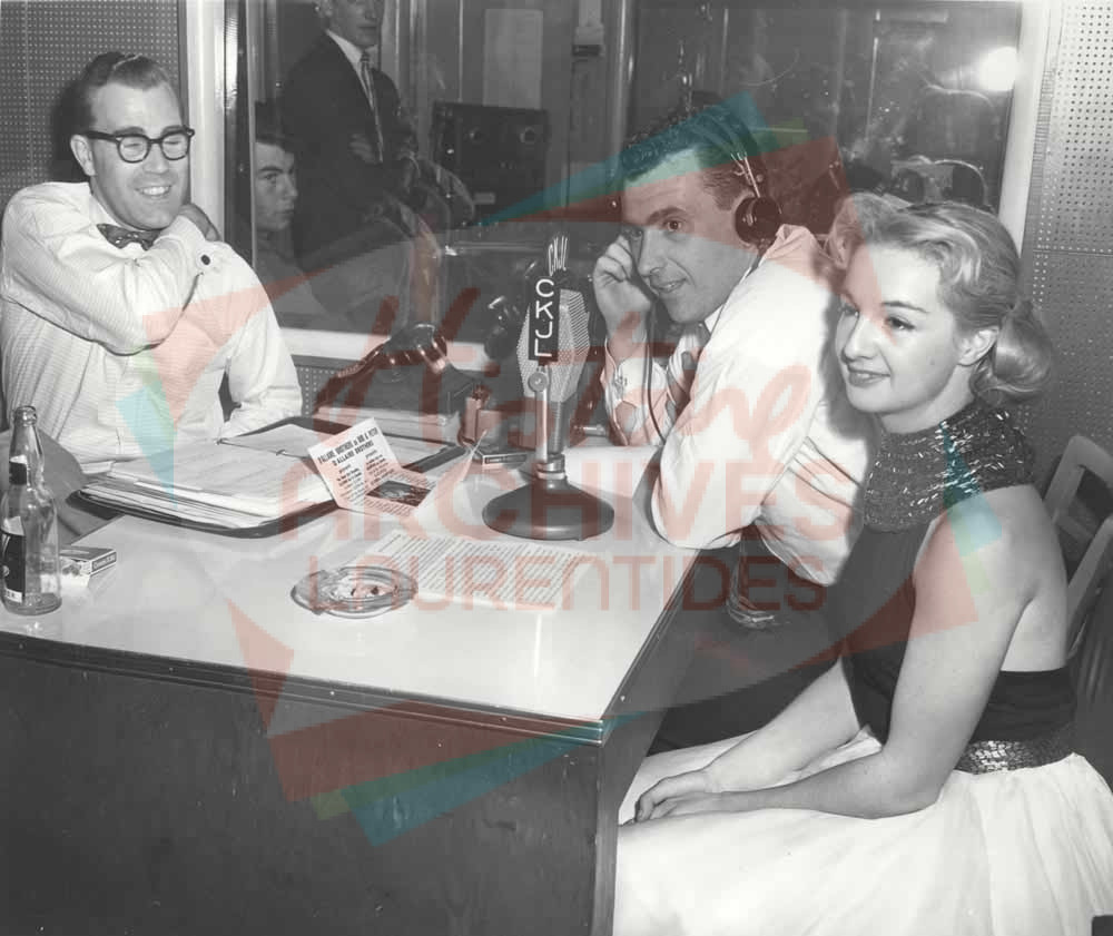 Individus lors d’une émission radiophonique sur les ondes de CKJL à l’Hôtel Lapointe de Saint-Jérôme.