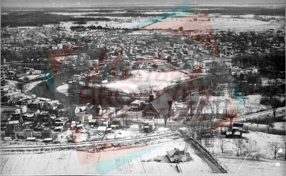 Secteur de l’église Sainte-Marcelle, sur la rue Brière à Saint-Jérôme. À côté, on peut voir le château Craig sur le bord de la rivière du Nord.