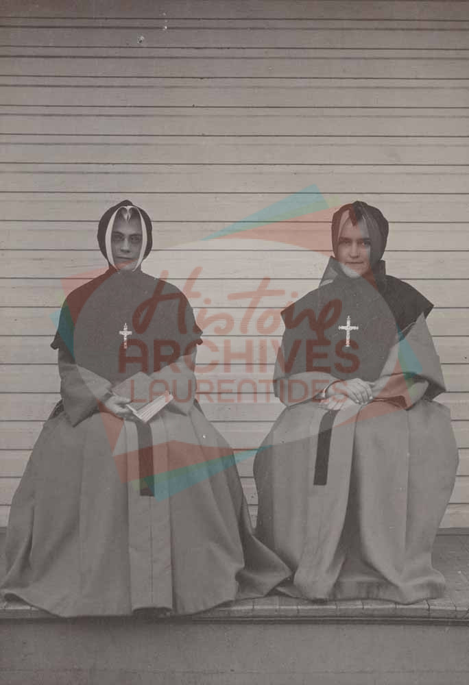 Sœur Marie-Ange Legault, de la congrégation des Sœurs grises de Montréal, et de Sœur Ouimet, e la congrégation des Sœurs grises d’Ottawa. Seul leur coiffe les distingue.