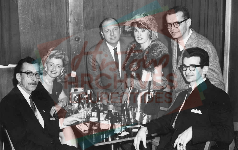 Marquis Allaire (au centre), fils du photographe Georges Allaire, en compagnie de son oncle Conrad Gareau et d’autres personnes lors d’un mardi gras.
